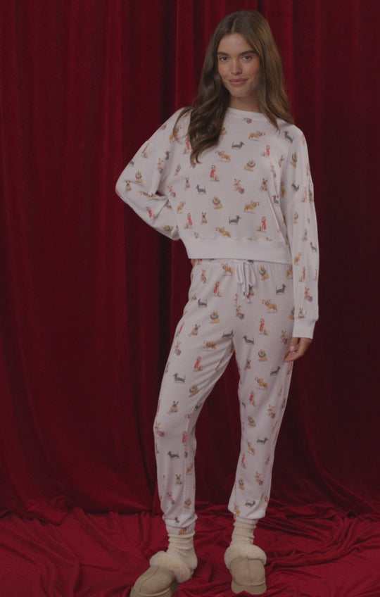 Made in brushed sweater knit, these joggers feature a tapered leg, drawstring waistband, and soft washed finish. The high-rise fit and ankle length make them the perfect pair for curling up or casual everyday wear.